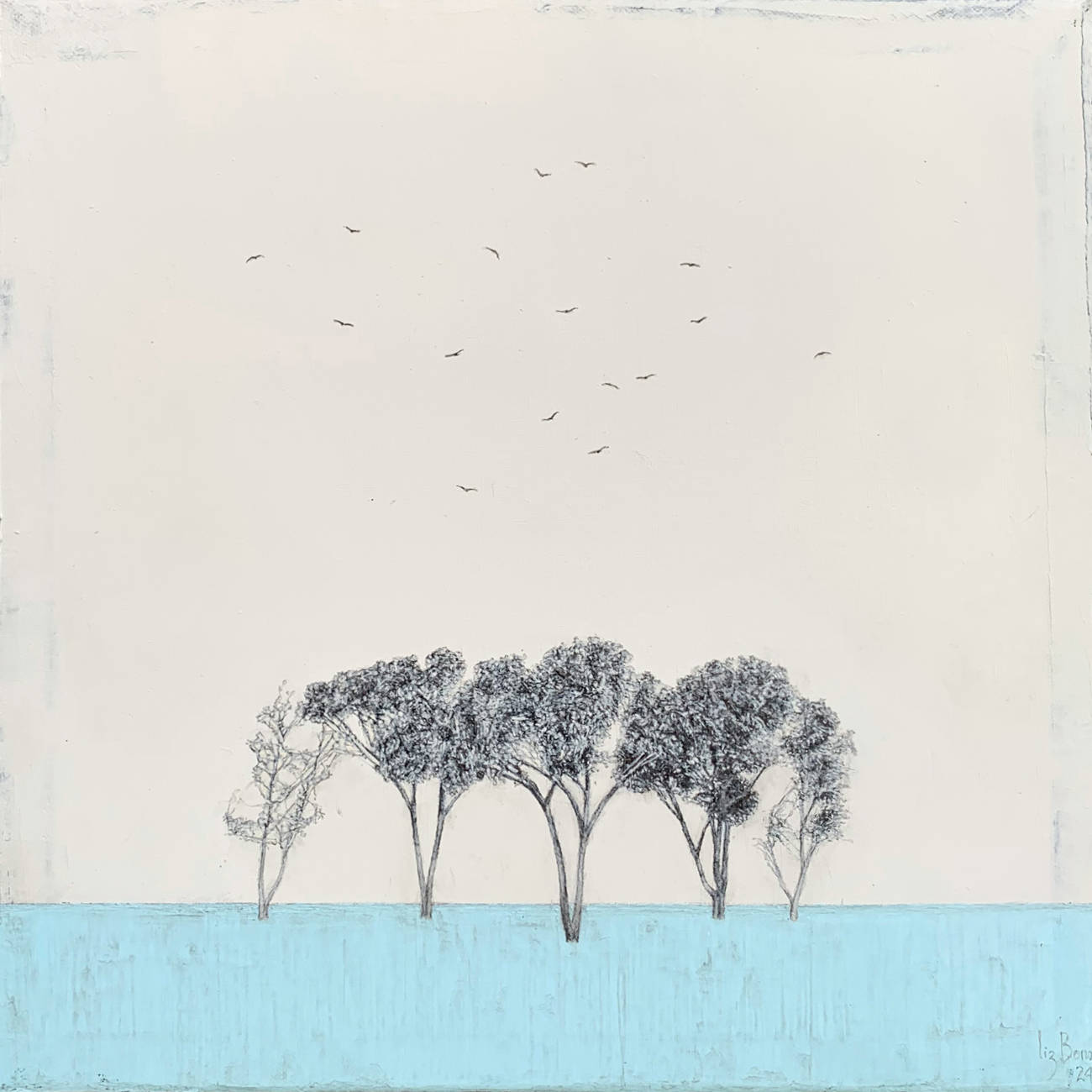 Her work, exhibited internationally, is characterized by a continual dialogue between abstraction and nature. Working primarily in oil and acrylic, Liz Bono crafts delicate canvases where each layer, each glaze, seems to suspend time itself. Her palette captures light, rendering an atmosphere at once tender and vibrant. Drawing inspiration from organic forms, trees, rocks, clouds, she offers a tranquil vision of nature, removed from chaos, almost meditative.