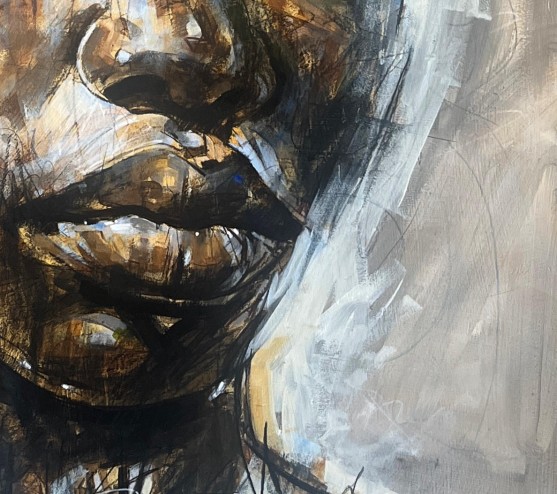 Ozan Virgule is a contemporary artist whose work explores the intimate through expressive portraits painted primarily in acrylic on canvas. Balancing abstraction and realism, he brings faces to life from textured, monochrome backgrounds, using bold contrasts and dynamic gestures to reveal raw emotion.