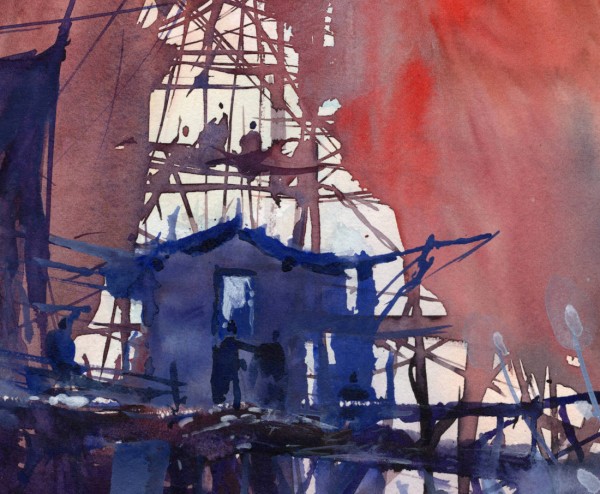 Enhanced during travels or in the workshop, the drawing becomes a support for a composition. The sketches of the past can be superimposed, the light and the colors are reinvented ... The travel diaries continue their journey.