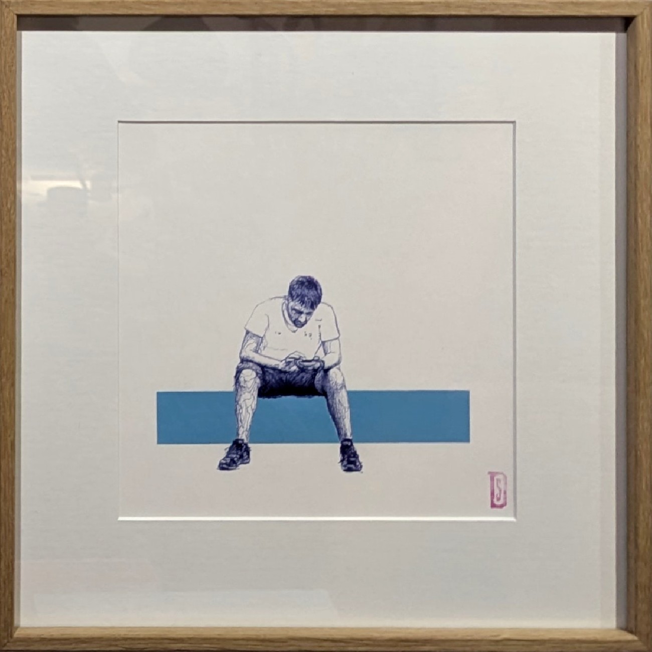 Dessin au Stylo-bille bleu et peinture acrylique sur papier, avec cadre et passe-partout