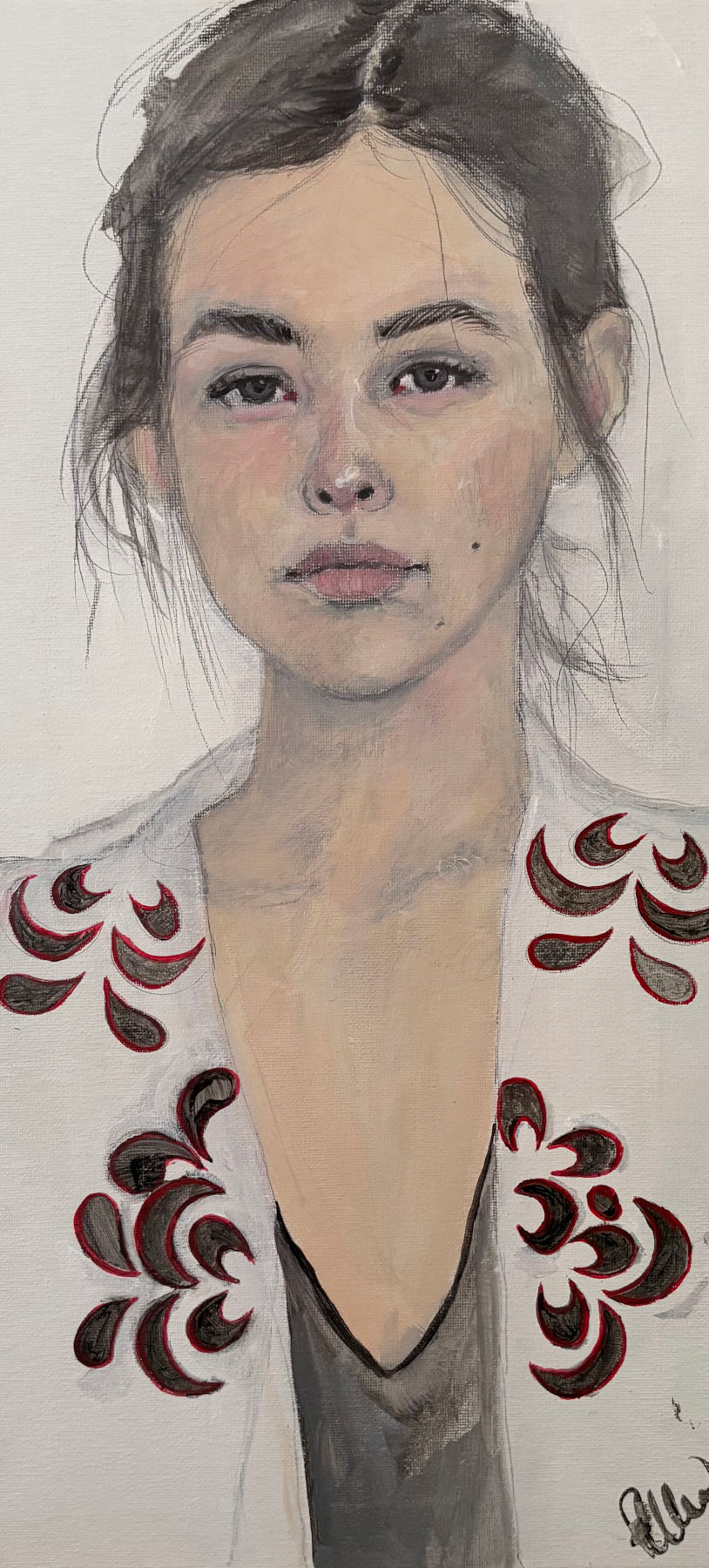 Ses oeuvres d'art sont la représentation de portraits féminins comme des icônes de notre société contemporaine où le corps et l'image de la femme s'émanciperaient des stéréotypes pour retrouver sa force et son caractère premier. Des tatouages, des marques, des symboles sont présents aussi bien pour accentuer cette recherche d'une beauté presque primitive, que comme la marque de notre société contemporaine. Les tatouages apparaissent comme des armures de peau.