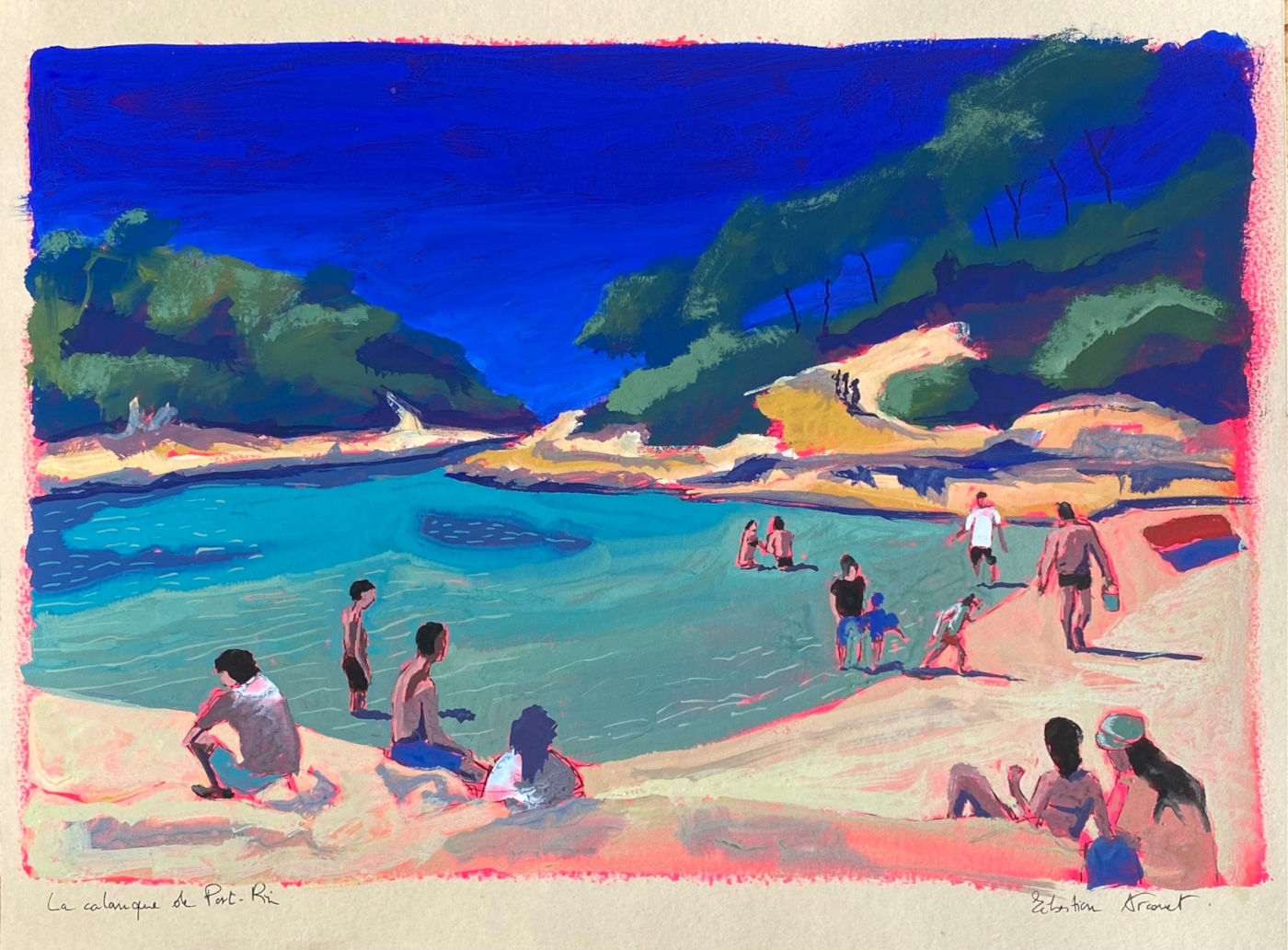 "Depuis début janvier 2020, j’ai débuté ces œuvres sur la ville de Marseille. Ce projet pictural s’articule autour de portraits et paysages peints à la gouache. Je me permets d'aborder les gens pour leur demander si je peux les peindre car au moment où je les croise, que je croise ou pas leur regard, c'est le moment de le faire. Cela peut paraitre plus simple avec un paysage et pourtant pour moi, ça ne l'est pas. Cette nature et ses décors m'ont peut être toujours trop impressionnés, ou je ne me sentais pas prêt, pas au niveau. Bien souvent on ne voit pas les gens et les paysages. Ce projet pictural me permet de prendre le temps de me poser, d'expliquer aux gens l'importance pour moi de capturer ces instants, leurs instants parce que je les trouve beaux, simples. Peindre les gens et les paysages en essayant l'espace d'un instant d'arrêter le temps pour peut-être accepter de se dire qu'on va quelque fois trop vite et qu'il est bon de savoir ralentir, regarder et voir, les paysages et les gens. Avec le confinement, mes gouaches ont pris une autre tournure. J’ai ressenti le besoin de peindre les paysages seuls, comme si la nature avait dit « poussez-vous, je pose ! ».