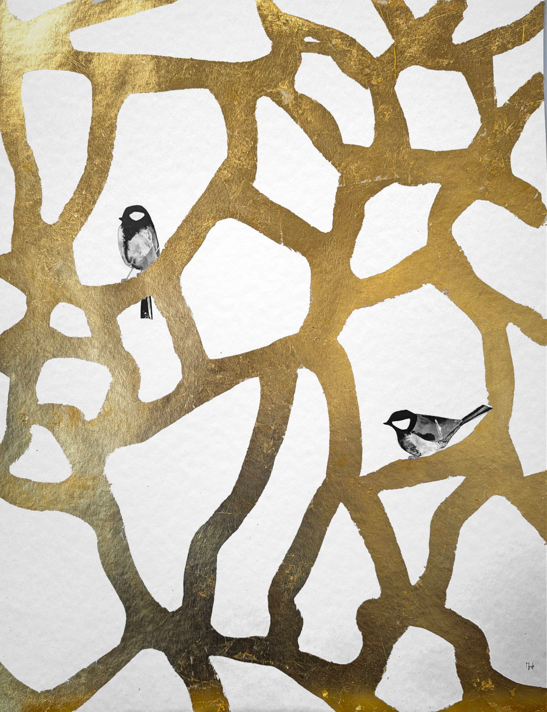 Encre de Chine et feuille d'or sur papier Montval nuage (sans cadre)