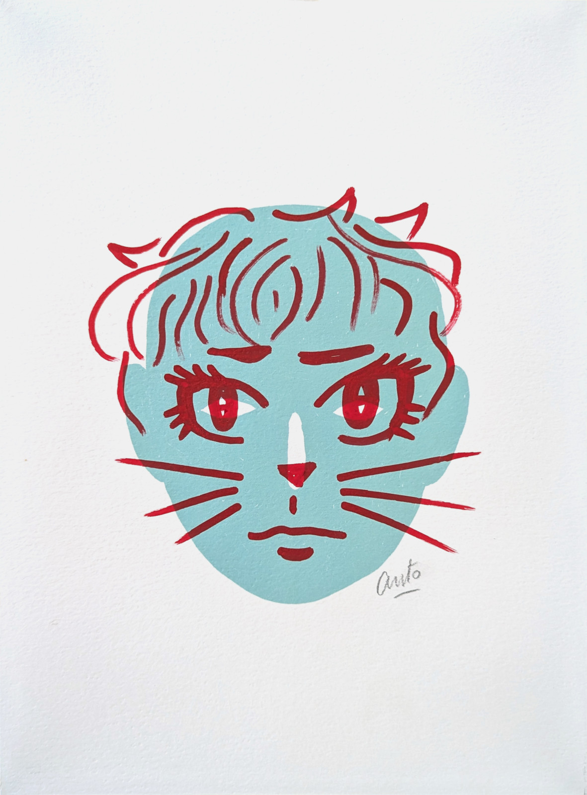 La série Chépacéki est née du besoin de revenir à ce plaisir direct : j’ai conçu une forme de visage imprimée, support récurrent sur lequel je dessine. D’abord limitée à une seule couleur, cette contrainte a évolué vers une ouverture de la palette et des techniques. Plus de 1200 visages ont vu le jour, chacun singulier malgré la base commune.