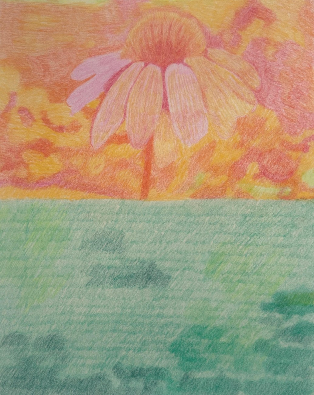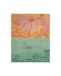 Le geste du dessin au crayon de couleurs est lent et attentif, il s'agit moins de représenter que de capter, une sensation fugace retenue et posée sur le papier.