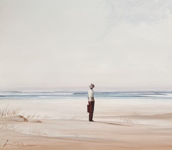 Ses personnages et ses paysages intemporels nous rappellent les croquis de voyage de Delacroix au Maroc et des grands explorateurs tandis que ses marines, aux chaudes tonalités, nous invitent à l'embarquement pour une croisière sur le Nil ou vers la route des Indes... Sa quête artistique est celle de l'intemporalité... une ambiance, une atmosphère, des impressions naissent de ses coups de pinceaux.