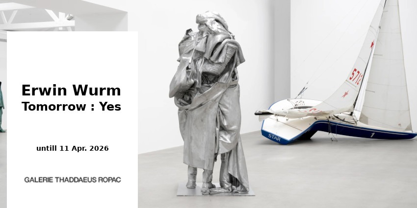 Tomorrow: Yes est une exposition consacrée à l’artiste autrichien Erwin Wurm, ainsi que sa première présenta tion personnelle à investir l’intégralité du vaste espace de Thaddaeus Ropac Paris Pantin. L’exposition s’articule autour de deux installations sculpturales monumentales : une école compressée et un voilier courbé de six mètres de haut. Les œuvres exposées, dont la majorité sont présentées ici pour la première fois, englobent des matériaux allant du marbre au bronze en passant par l’alumini um, et couvrent certaines des séries les plus célèbres de l’artiste, dont ses emblématiques One Minute Sculptures participatives. Réunies dans la galerie de Pantin, elles forment un vocabulaire sculptural qui relève de l’abstraction et de l’intangible, démontrant la manière radicale dont Wurm ne cesse de pousser les limites de la sculpture.